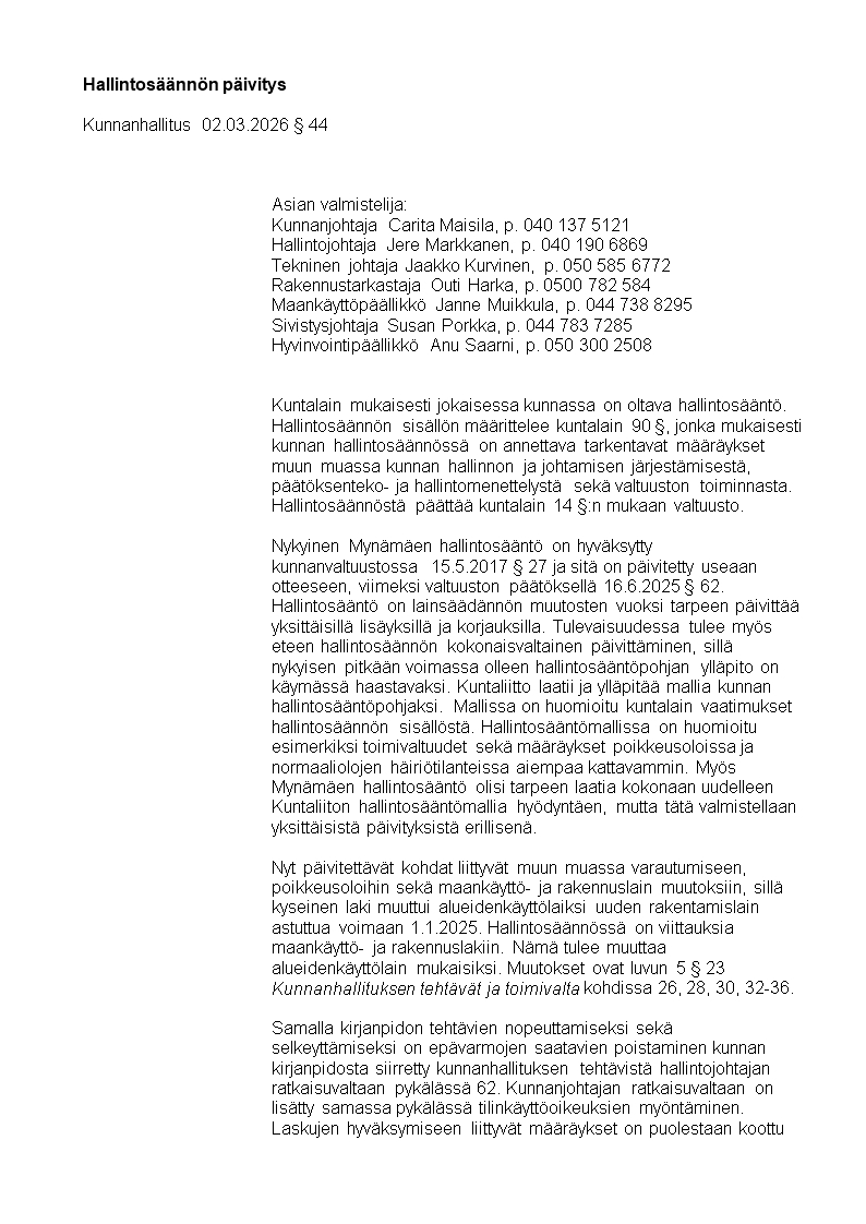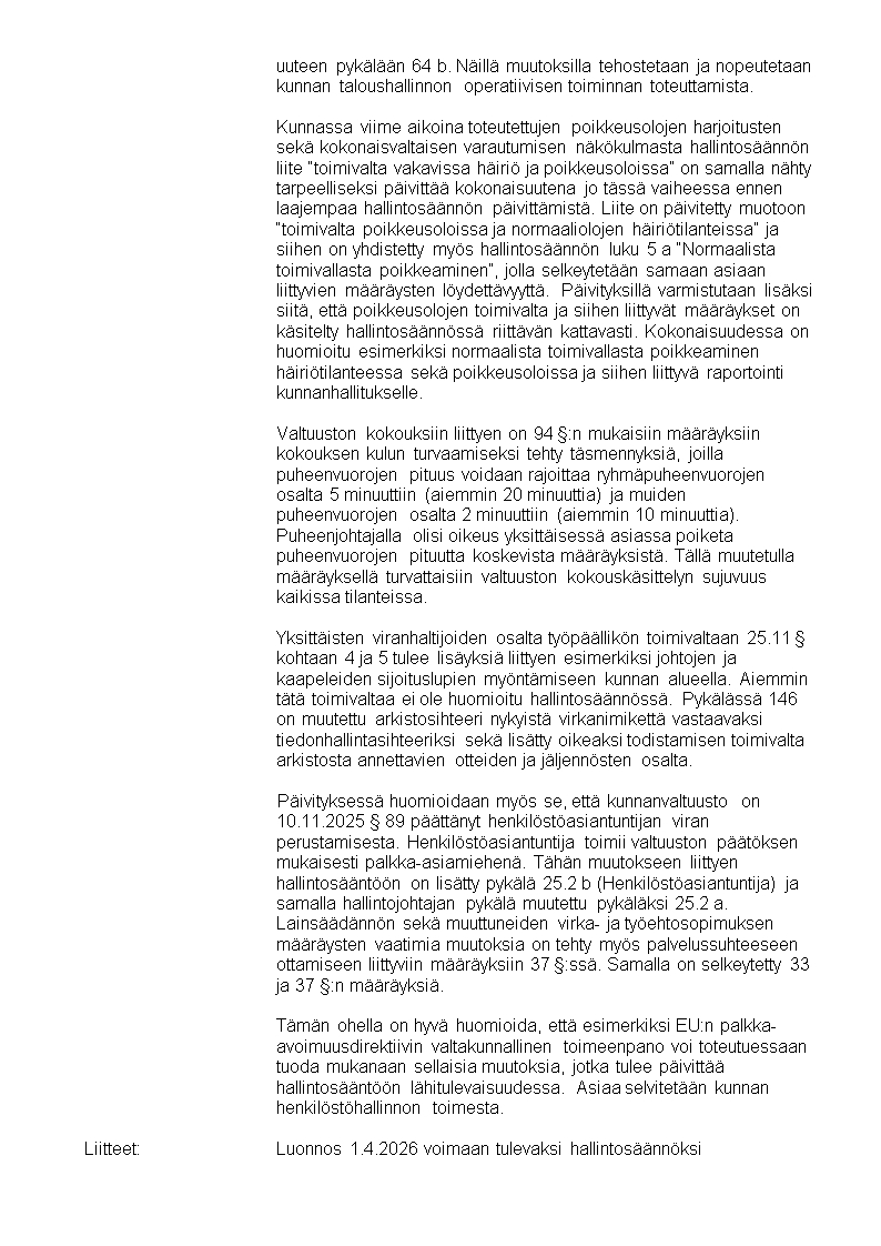 Hallintosääntö 1.4.2026 alkaen