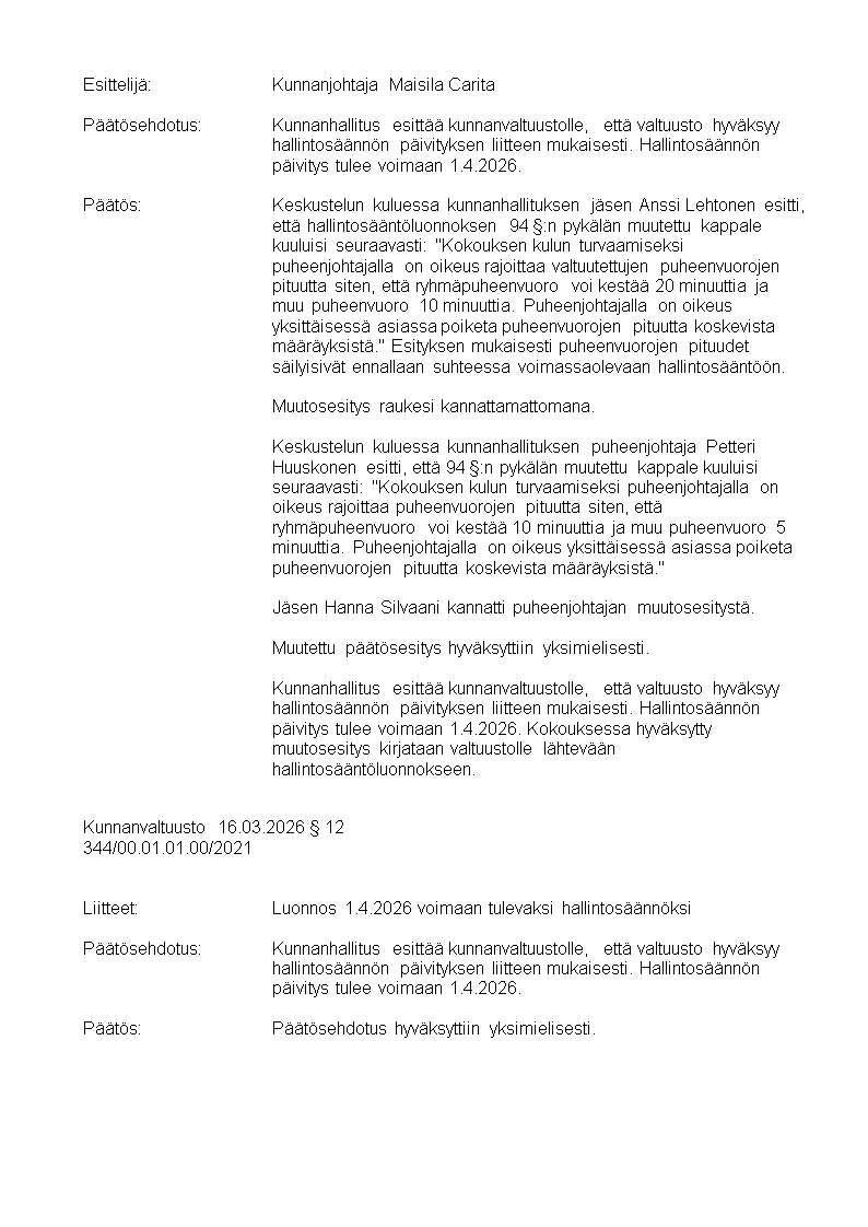 Pöytäkirja 16.03.2026/Pykälä 12