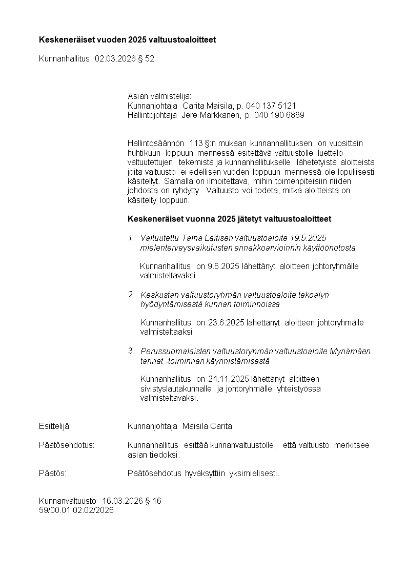 Pöytäkirja 16.03.2026/Pykälä 16