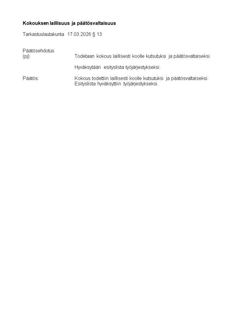 Pöytäkirja 17.03.2026/Pykälä 13