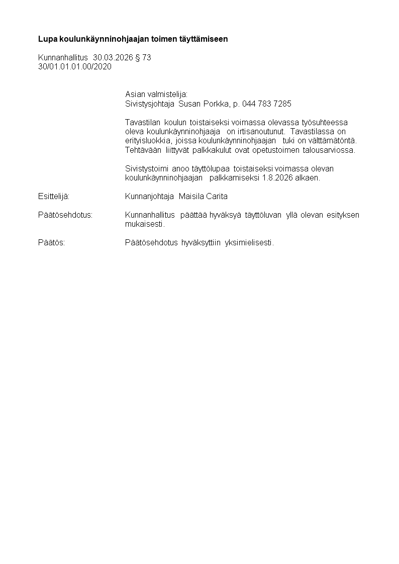 Pöytäkirja 30.03.2026/Pykälä 73