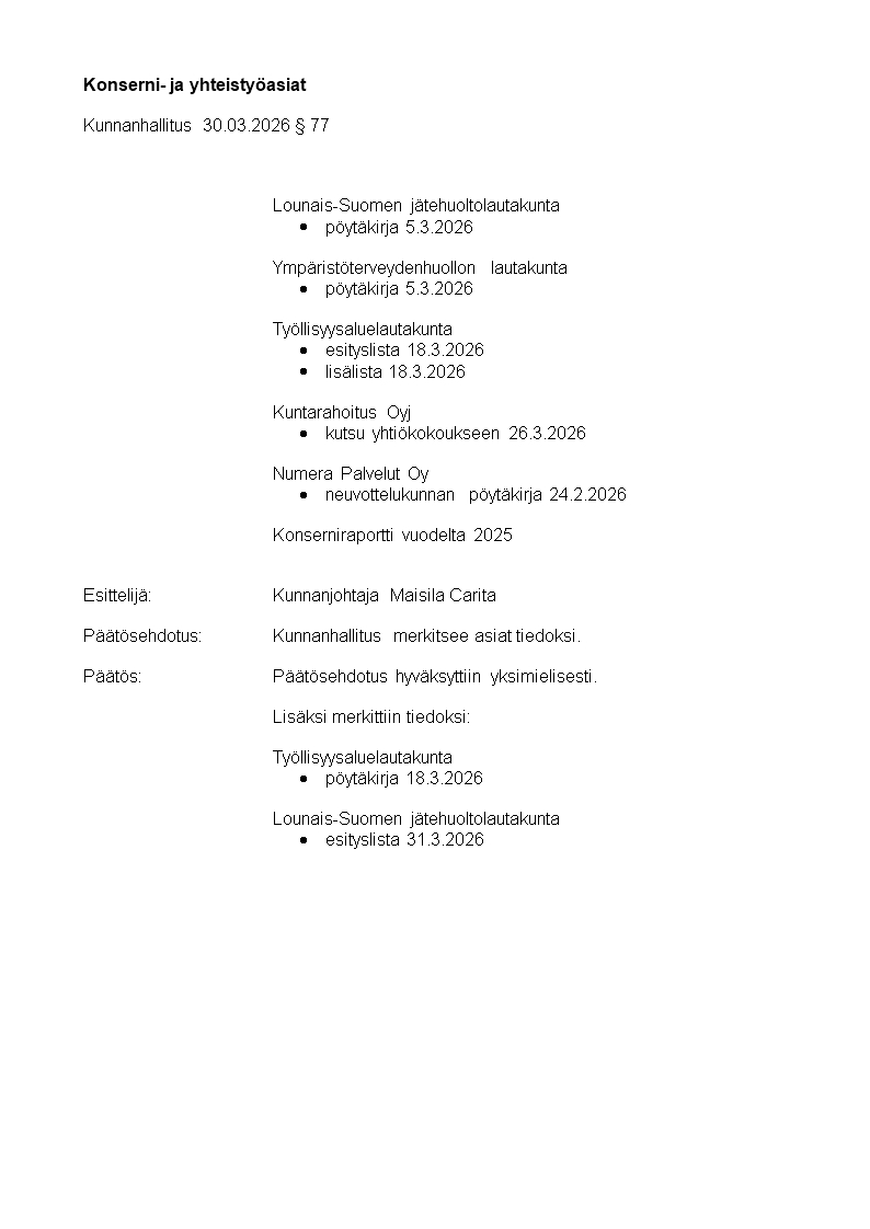 Pöytäkirja 30.03.2026/Pykälä 77