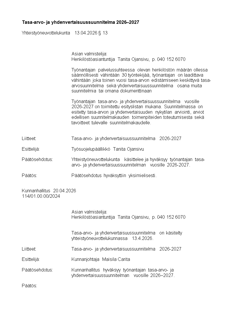 Tasa-arvo- ja yhdenvertaisuussuunnitelma 2026